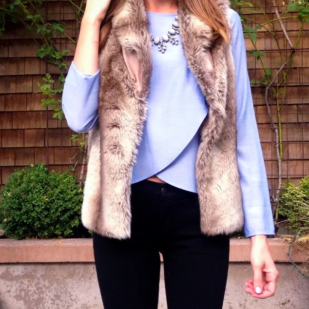 Keeping on the topic of fall layers, another must, in my opinion, are vests. I have the infamous herringbone and navy striped puffers, but I love the richness that a faux fur vest can add. I snagged this one from T.J. Maxx last year (sorry!) but I linked some similar ones below. I love the minky color and softness of it. It's almost silky and it really does add such a great vibe to any look. Layered over dresses, sweaters, blouses...faux fur vests are really a staple wardrobe piece.