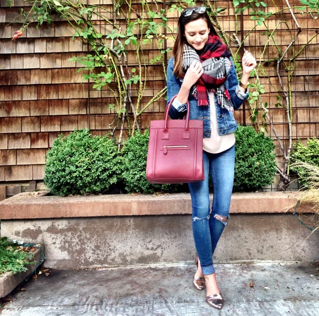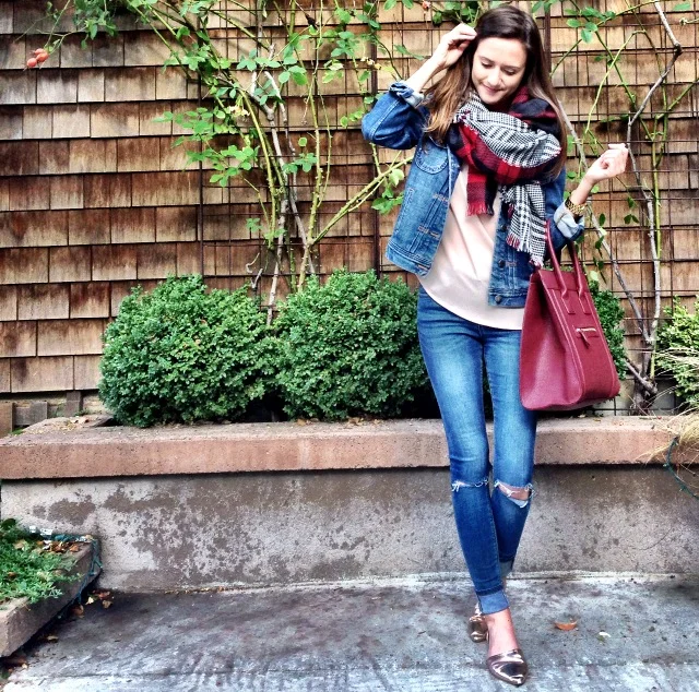 Shop the Look Below. Scarf: Brina Box. Jeans: ASOS. Jacket: Jcrew Factory. Shoes: Chinese Laundry. Bag: Forever21.
