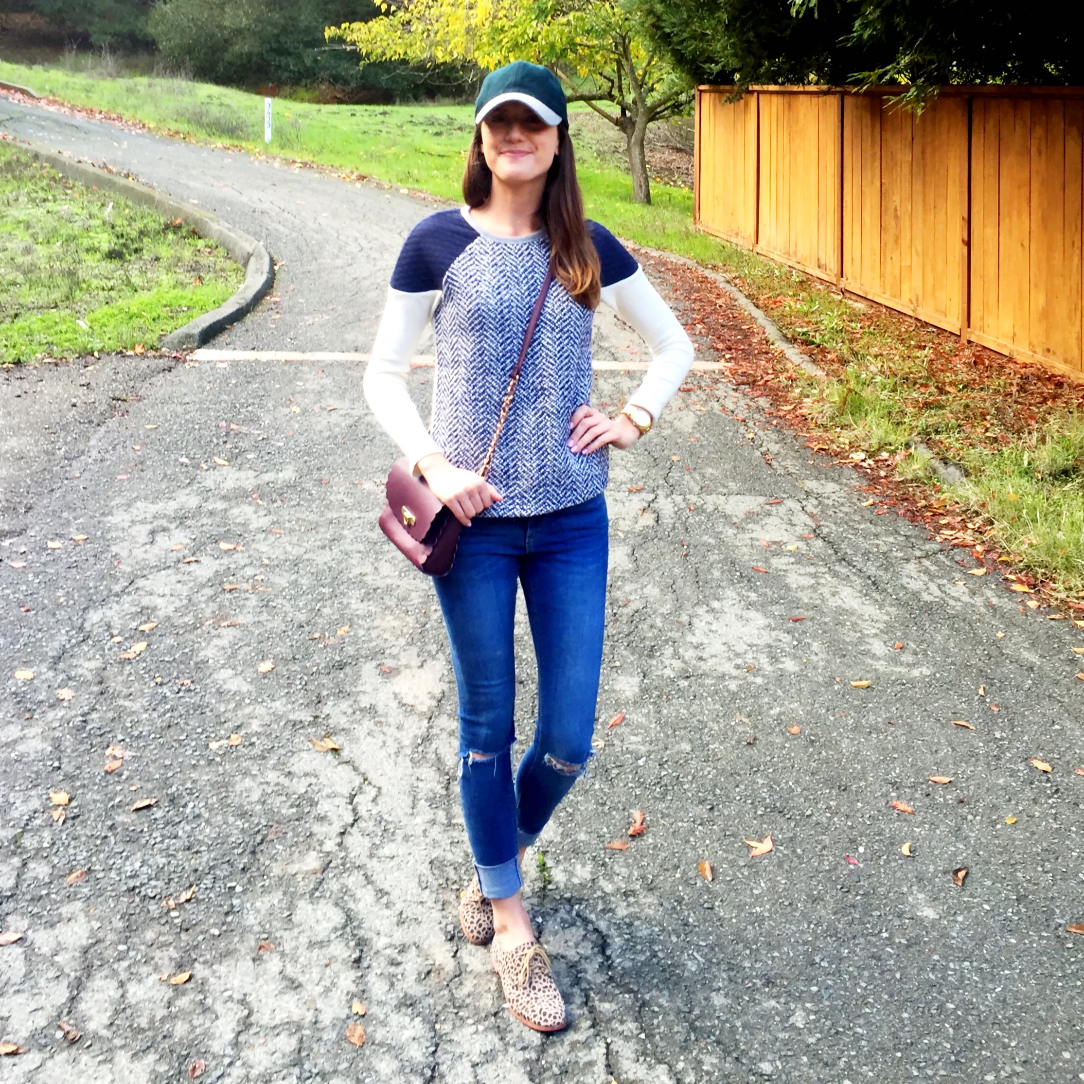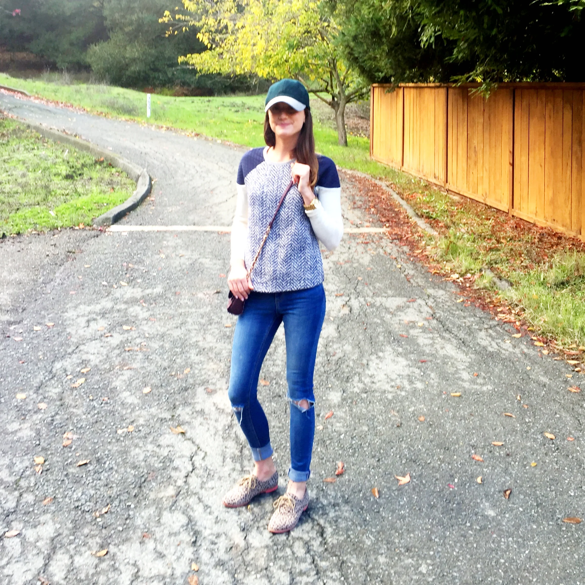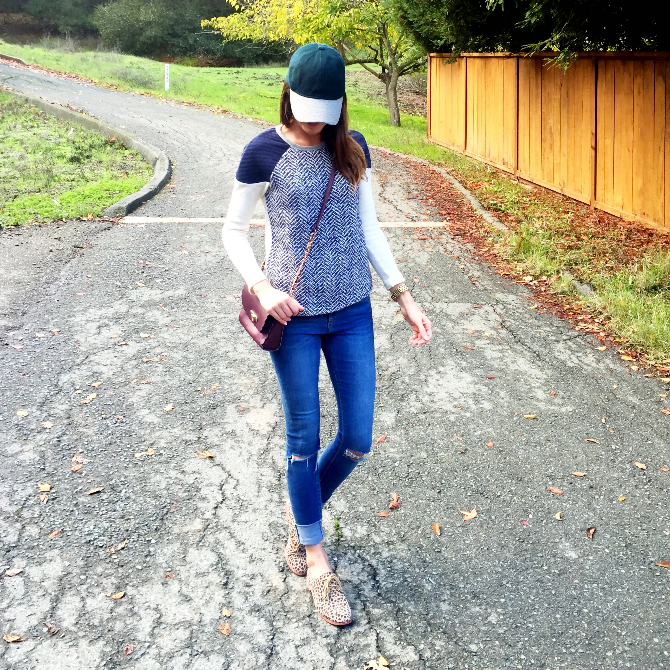 Weekends in my book are all about comfort. Honestly, sometimes I don't even change out of workout wear. And I probably didn't even work out. Just sayin. Typically, I'll throw on a pair of jeans and a baseball cap and call it a day, but I think you're kind of winning when your jeans and baseball cap are actually a little bit presentable. Distressed denim + sweater + baseball cap + leopard oxfords = out the door in the easiest casual weekend look.