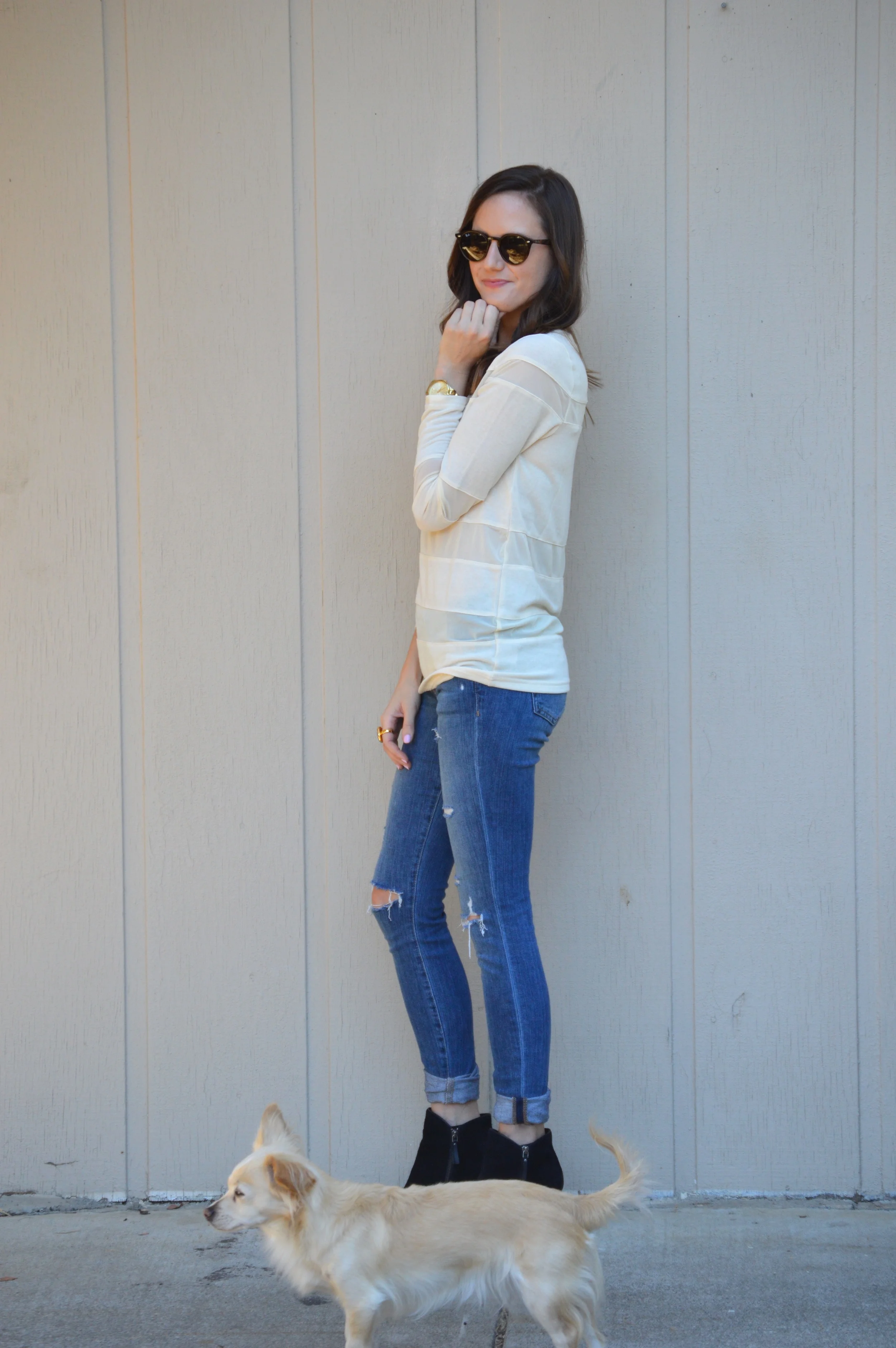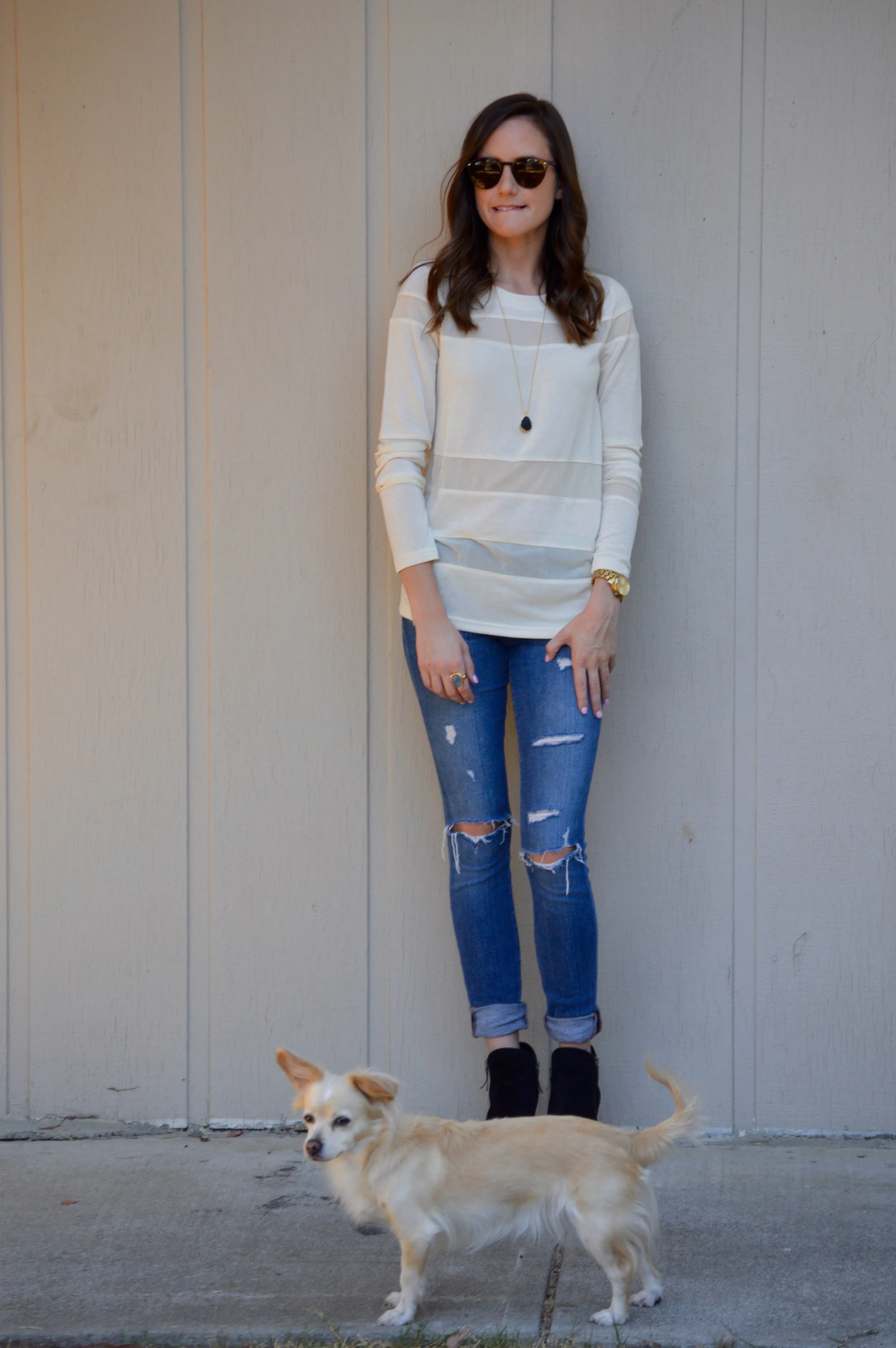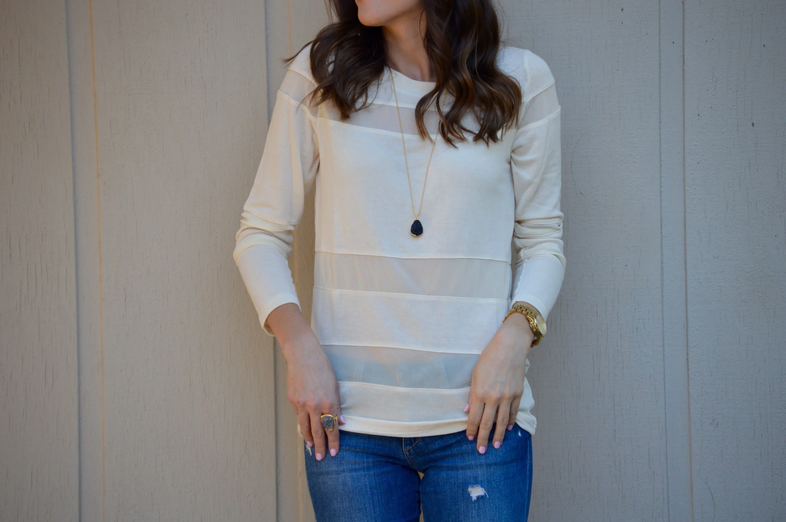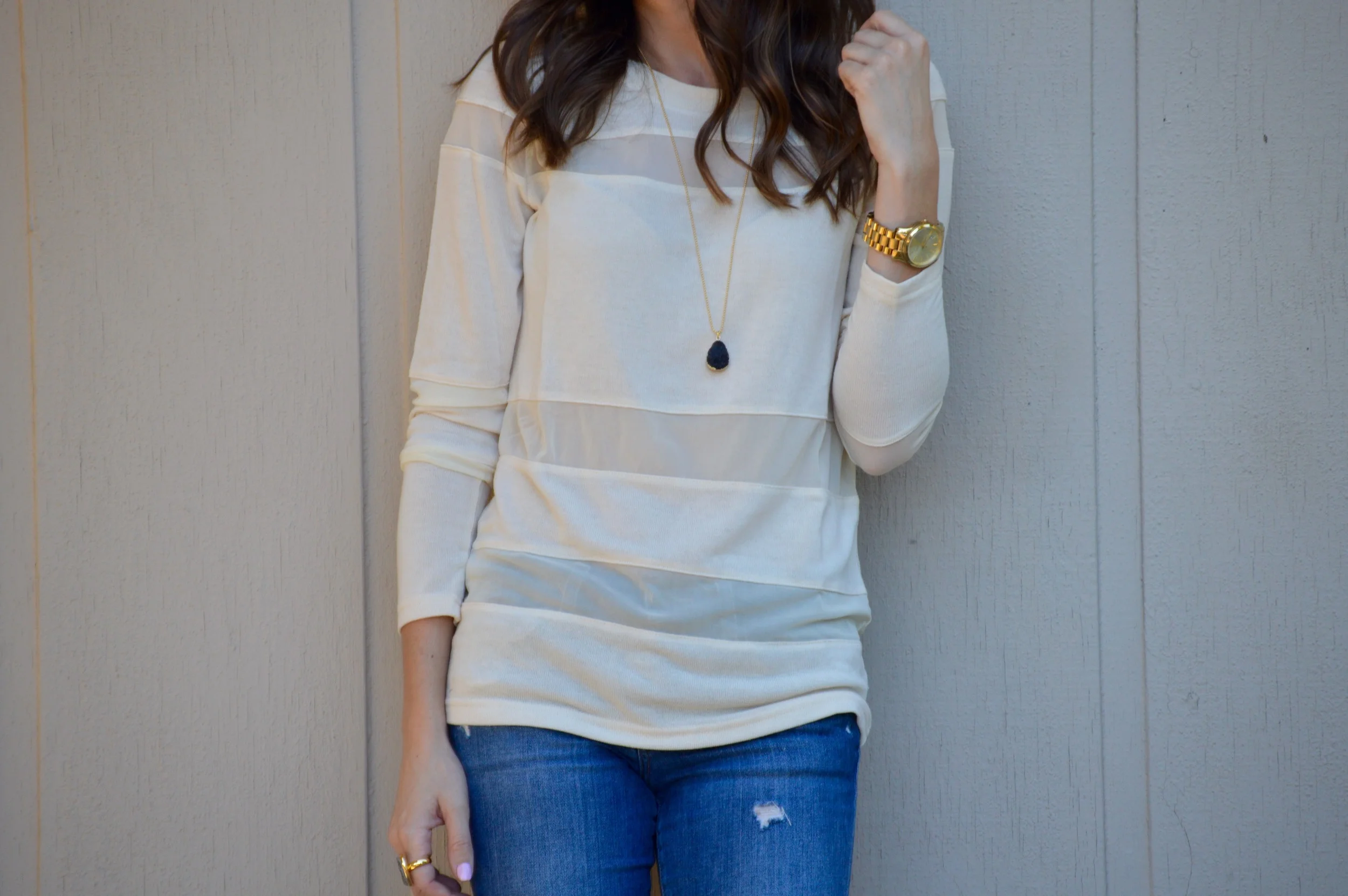 This mesh striped top is also from Pink Blush and I love it so. I'm all about basics with a twist and it's definitely just that. It's the easiest piece to throw on and go and I love the touch of edginess and interest.