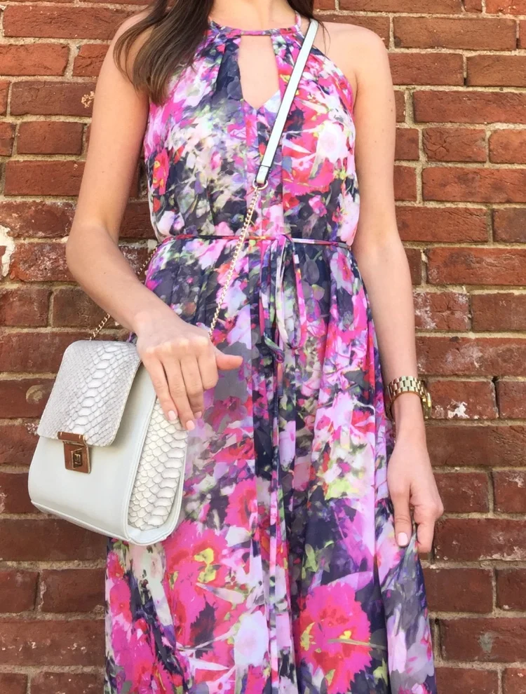Spring is officially here and what better way to welcome it than with a little floral print. I tend to gravitate towards floral and have numerous soft floral print tops, a bathing suit, scarf--even shoes--but I realized I didn't have a floral dress. Until now! This Maggy London floral maxi is my new favorite floral addition. And now my life (or floral wardrobe) is complete. (Ok well no--I still wouldn't mind having more.) Leopard and floral pops are kind of my love language.