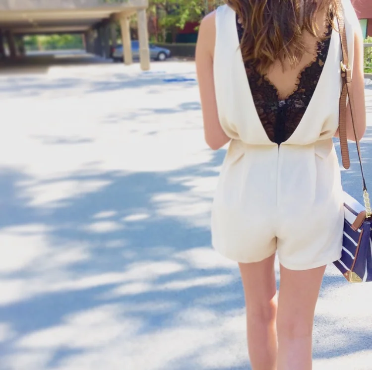 I have a thing for back flaunts. Like a major thing. I think it's one of the most tasteful ways to show a little skin and I love any piece of clothing that has unique back details, dips, and cutouts. That, combined with the fact that I love lace, made this little lace back romper from Lookbook Store an instant favorite. It's really comfortable and flattering and is perfect for a summer day paired with sandals, but can easily be glammed up for night. I went with an in between with heeled sandals and a casual crossbody that would be perfect to swap out with a clutch for night. If you haven't checked out Lookbook Store already, I highly recommend doing so. They have some really great pieces at an affordable price and I've been very impressed with both fit and quality.