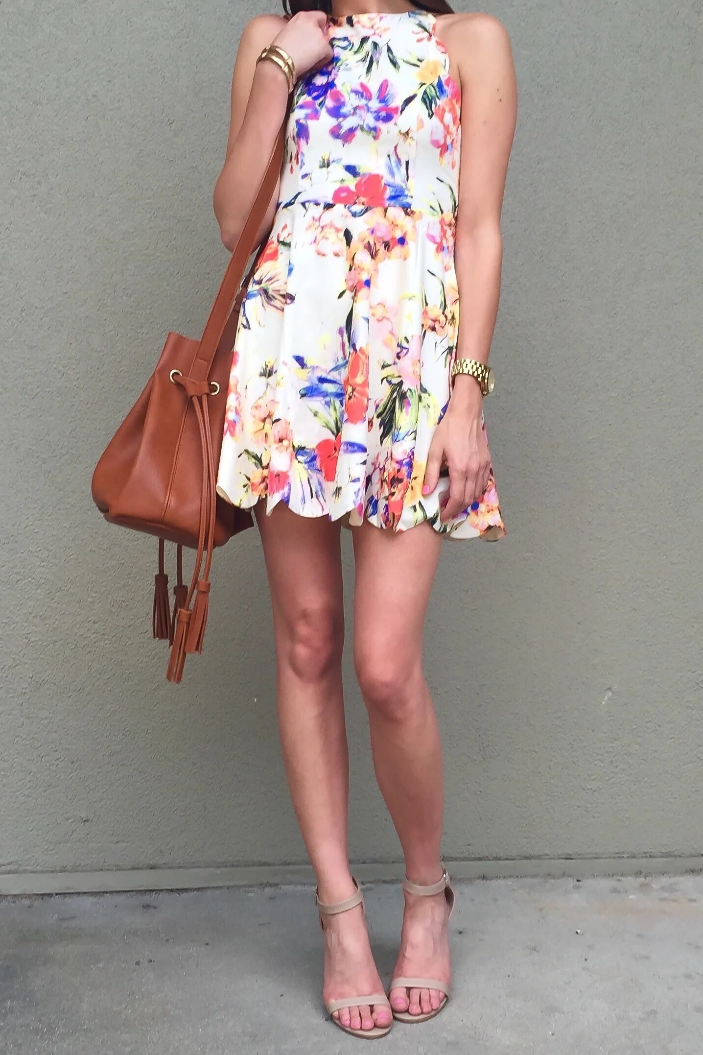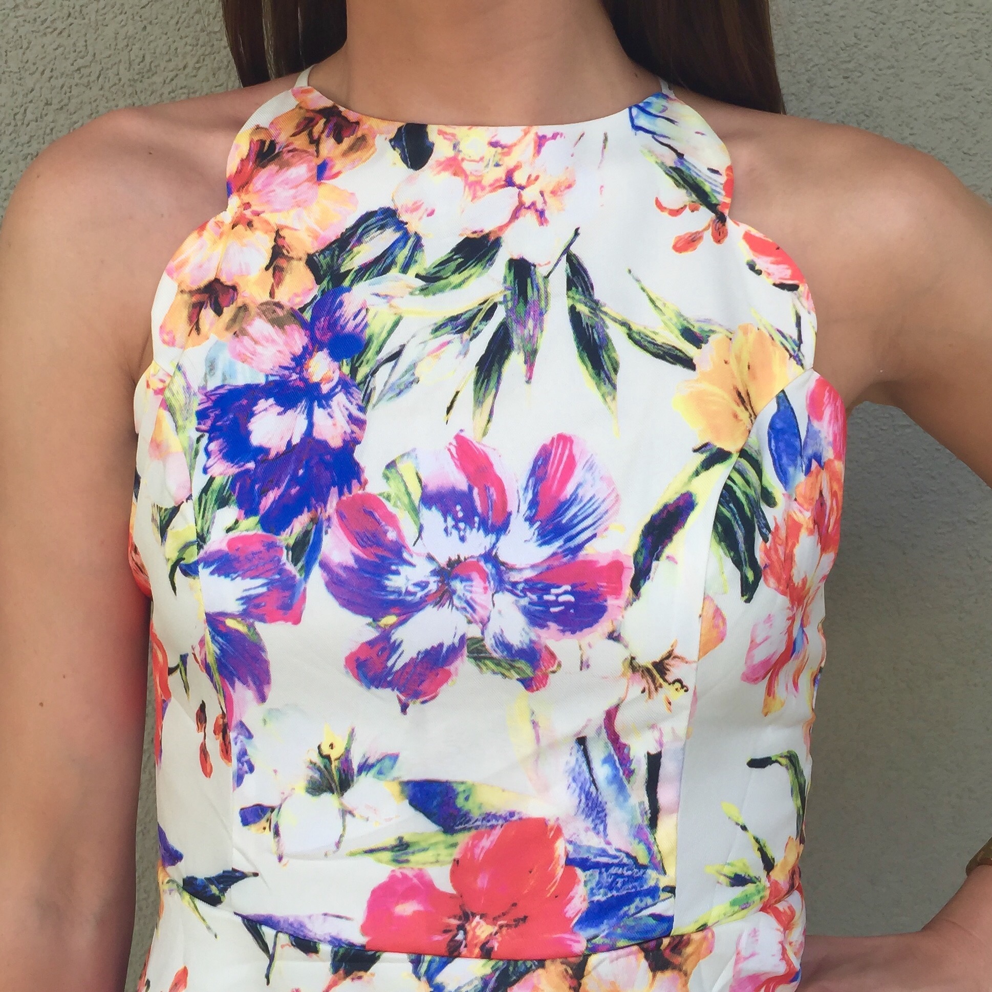 Ok, so I've probably said this a million times before, but this little number from Make Me Chic just might be my favorite summer dress ever, ever, ever. And I really truly mean it. I go nutso for floral print, back flaunts, and scallops and this little dress has all three. Which means it's pretty much perfect in my eyes. It's flirty and feminine and every little detail adds up to make it so. I love the scallop detailing along all of the edges and I can't get over the cross back. The print is so romantic and oh-so-perfect for summer. It's really lightweight and comfortable, but the fabric still feels substantial and very high quality. Which is amazing, because it's only $38.50. Honestly, it's even prettier in person.