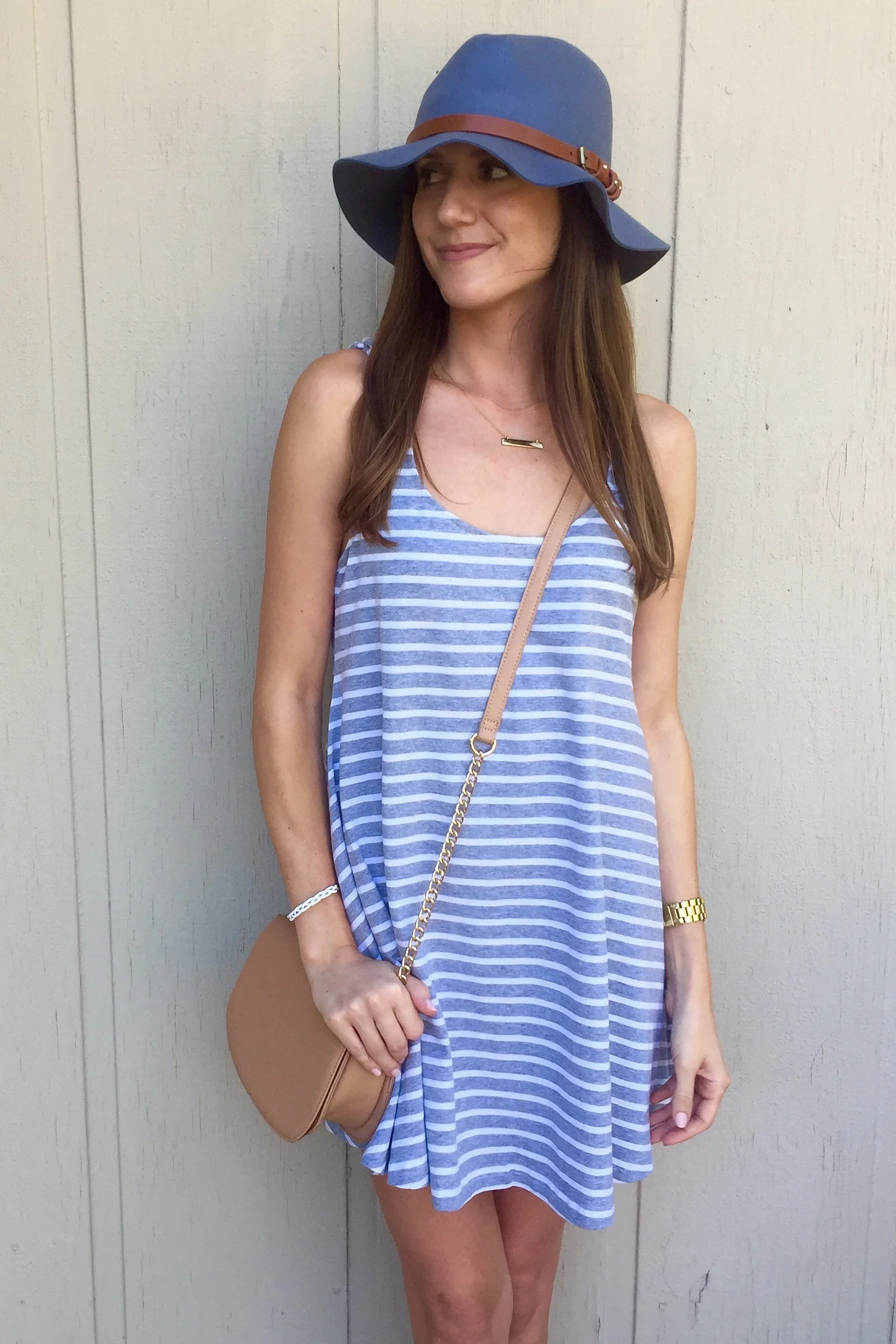 If you saw my last post you know that I have been living in dresses this summer and have had so much fun finding fun pieces from SheIn. (See previous post for a SheIn review!) I have ALWAYS wanted a little striped swing dress and for whatever reason never found the perfect one. When I saw this one on their site I knew it was just what I'd been looking for. Tank dress, swingy silhouette, PLUS it has a bonus of adorable braided straps. Which you can't see (oops!), but I promise they're too cute. This is another one of those "pleasantly surprised" pieces from SheIn. It's a really great material and is very comfy and soft. it really is that perfect "throw-on-and-go" look for a casual day, but would also look cute dressed up with wedges.
