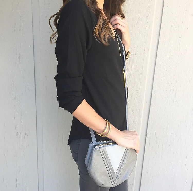So I'm sitting here telling you how much I love grey and realizing that this is my very first grey bag. But I think it was the perfect one to start with. This Viva Creatures! cross-body is their Valkyrie silhouette and the elephant grey is the newest addition to their collection. (It also comes in black and brown.)