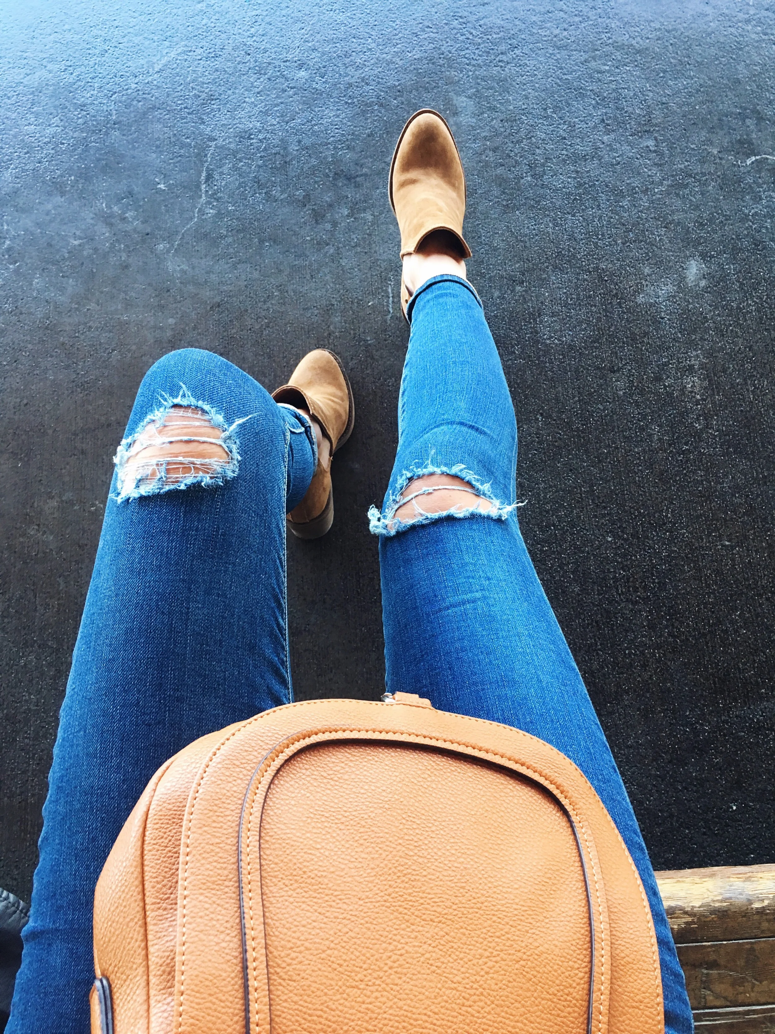 Finally, I love love my new Steve Madden Sharini booties and AG jeans. I normally wear a 25 in denim, but I got the 24 in the jeans, because they fit tighter through the leg and ankle. I'm really picky about skinny jeans and prefer a super skinny fit. If you like a normal skinny fit, you can definitely go for your normal size. I love Steve Madden and the color and style of these ankle boots is really classic, but still unique thanks to the side slits. I usually wear an 8 or 8.5 and got the 8.5.