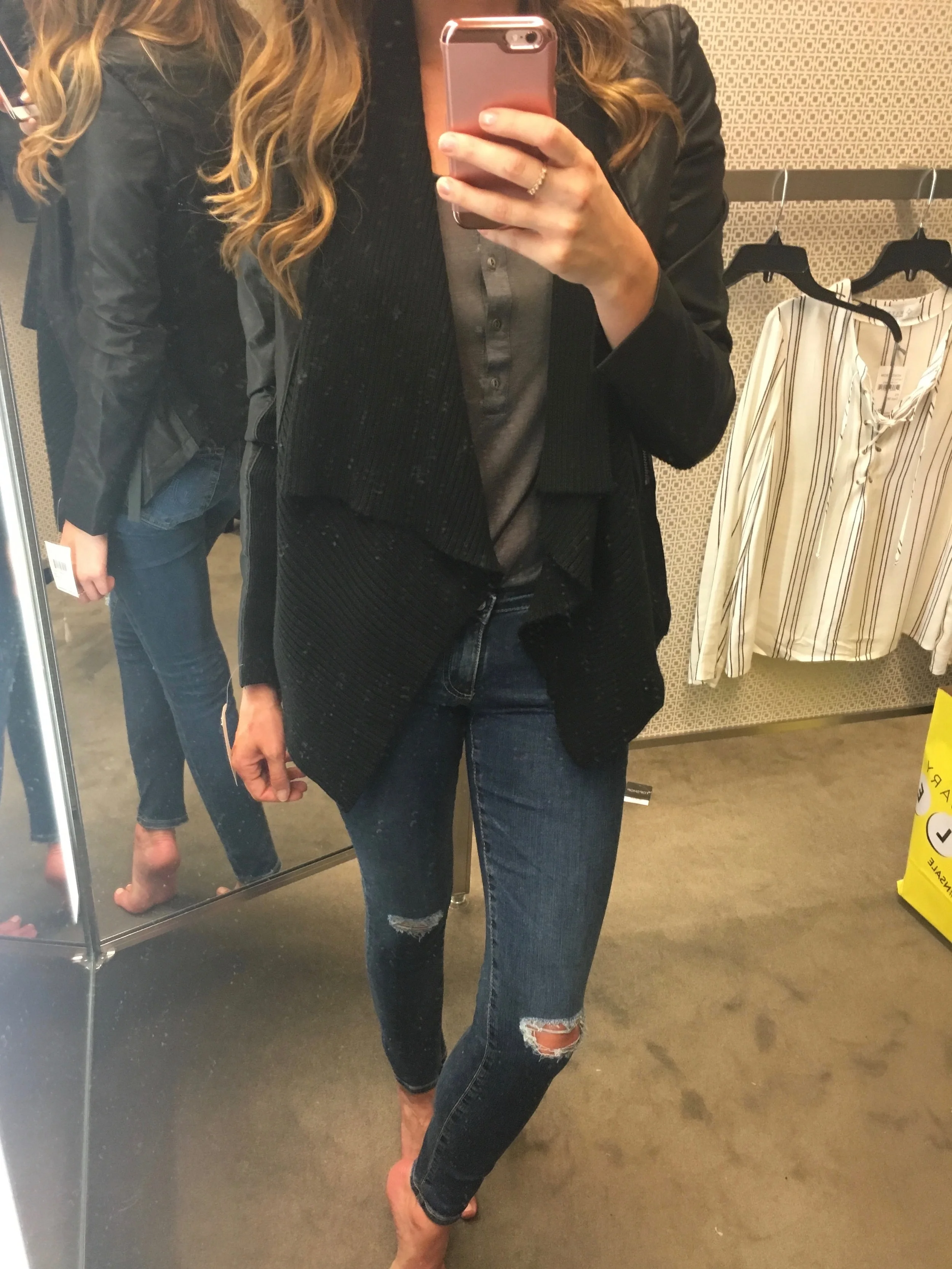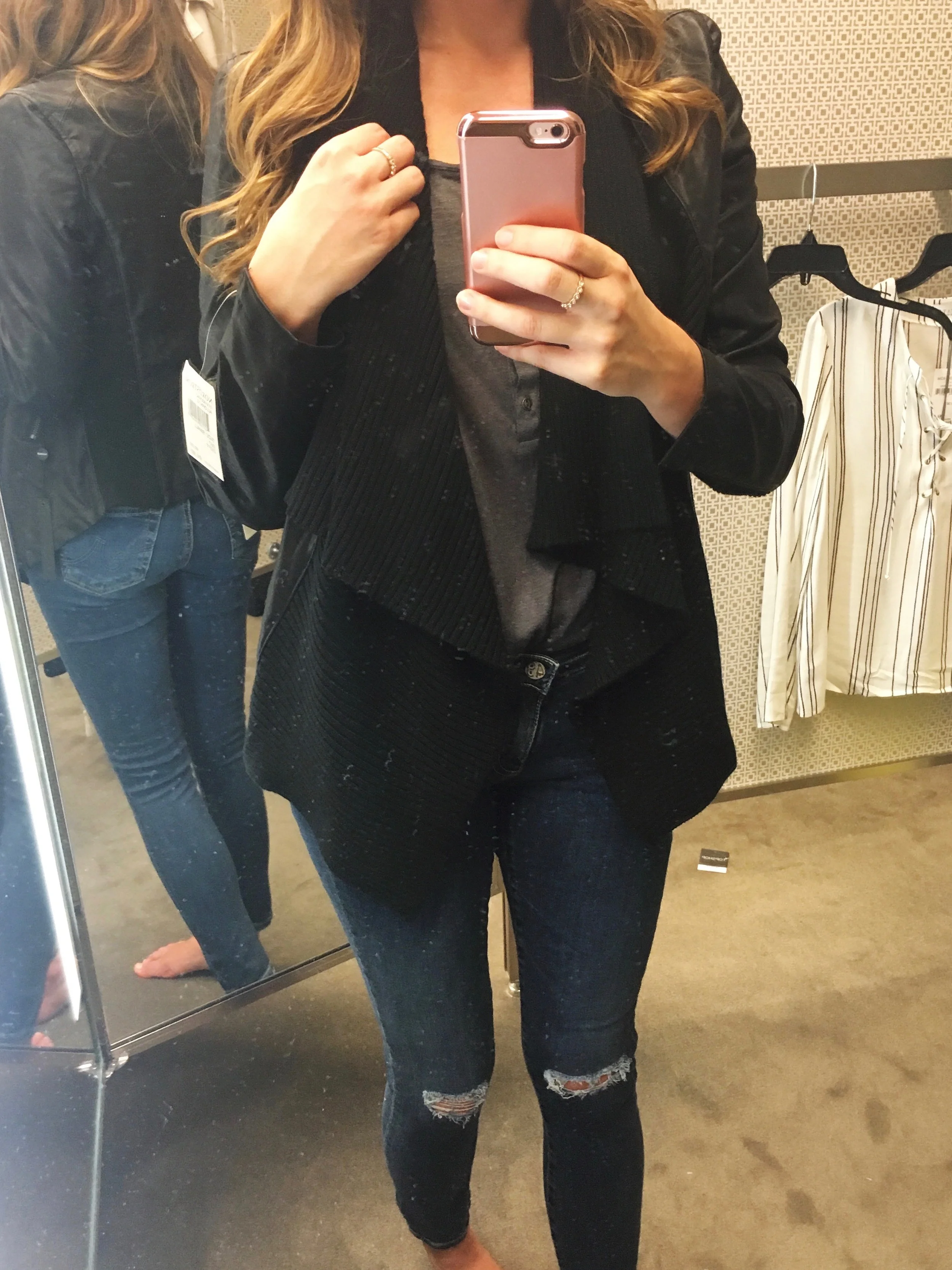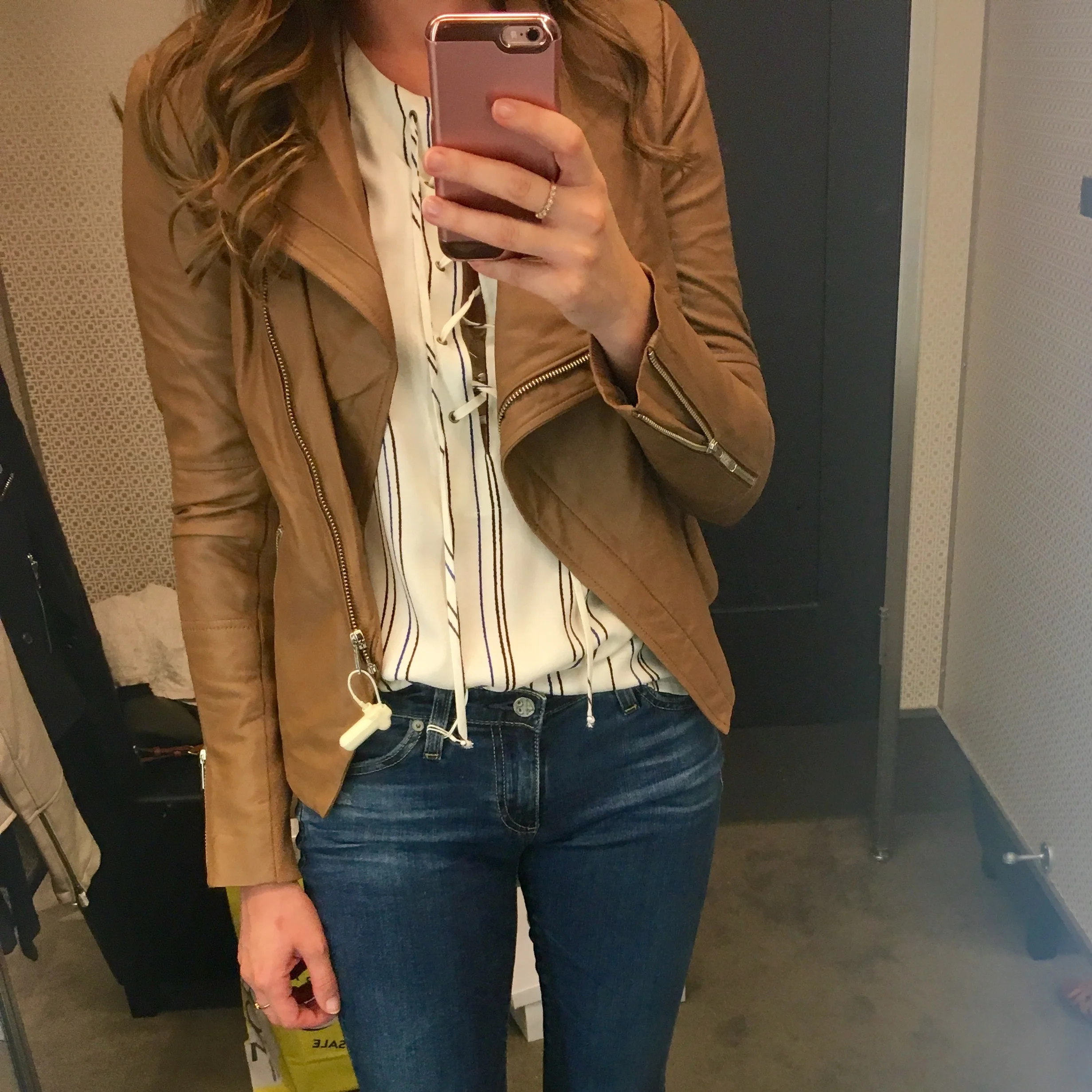 Excuse my fitting room selfies and Snapchat snaps here, but I wanted to share some of my favorites from the Nordstrom Anniversary Sale, as well as my first purchases. I am loving the layers and I swear I love summer, but now I'm really ready for fall. Thankfully San Francisco is cold at night, so I can wear booties and layers every season which is why they're one of my favorite purchases. I'm always looking for faux leather layers to add to my collection and the #Nsale does not disappoint this year.