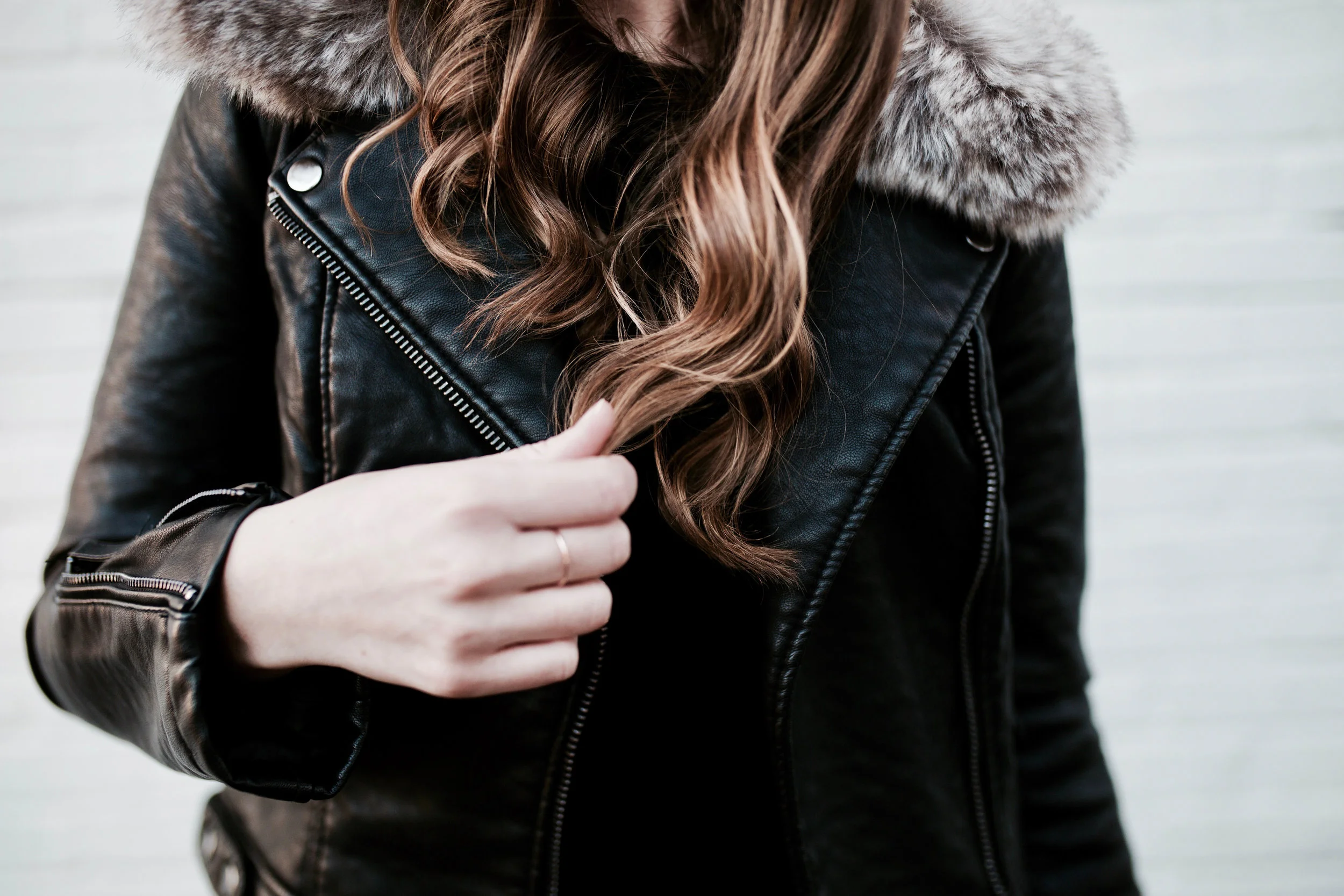 All Black Winter Style with Faux Fur Collar Moto Jacket