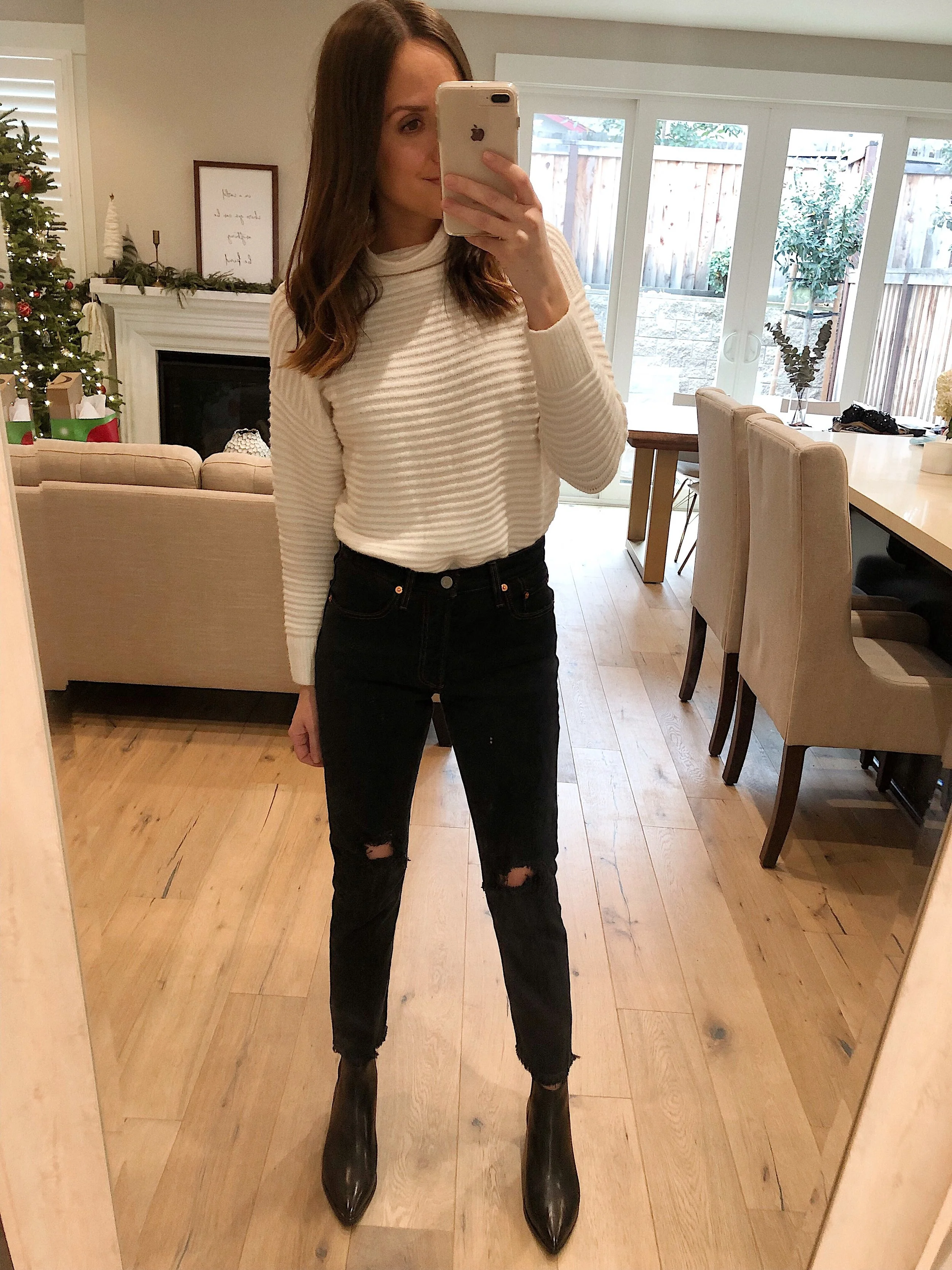 Madewell Sweater | Levi’s Jeans | March Fisher Booties