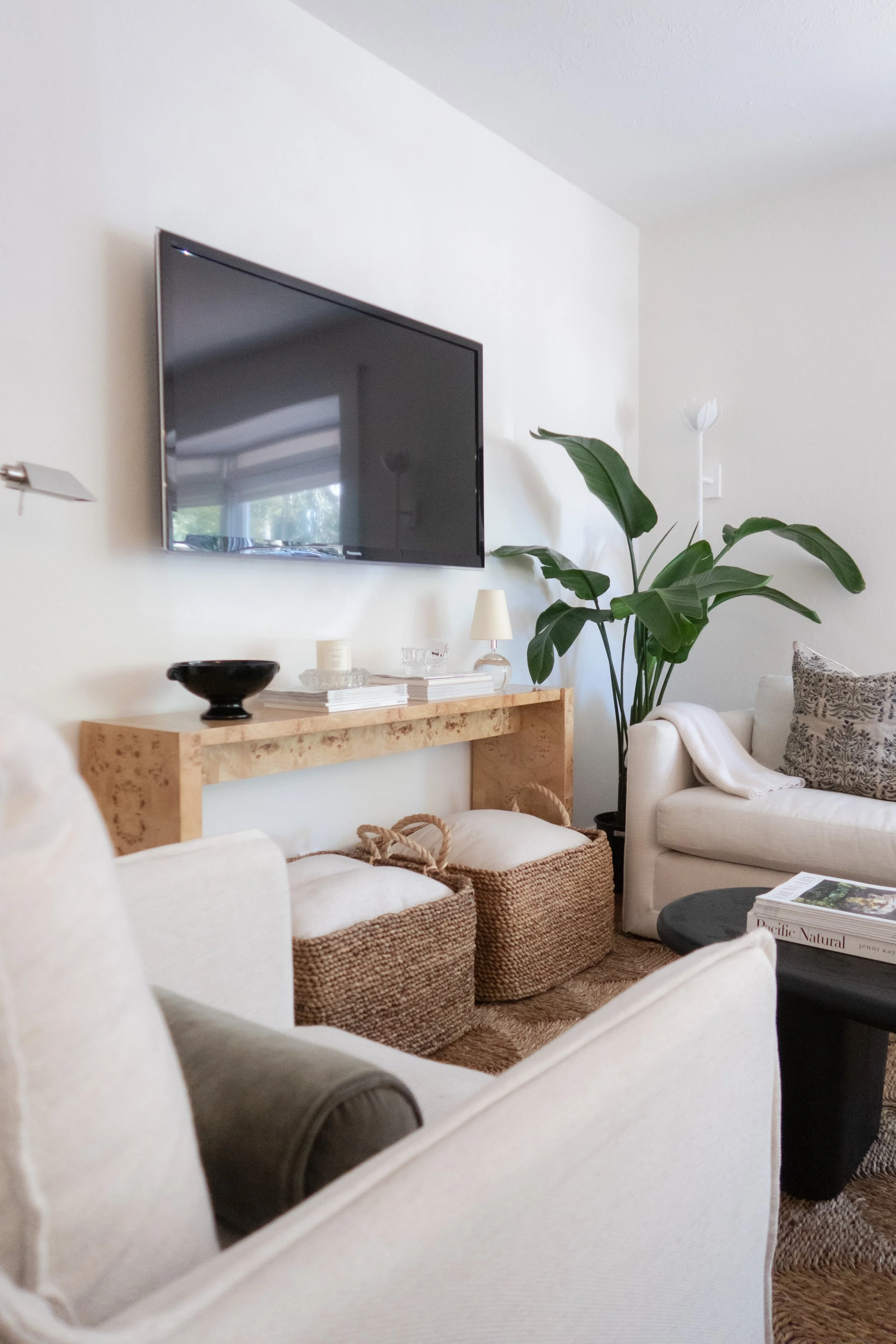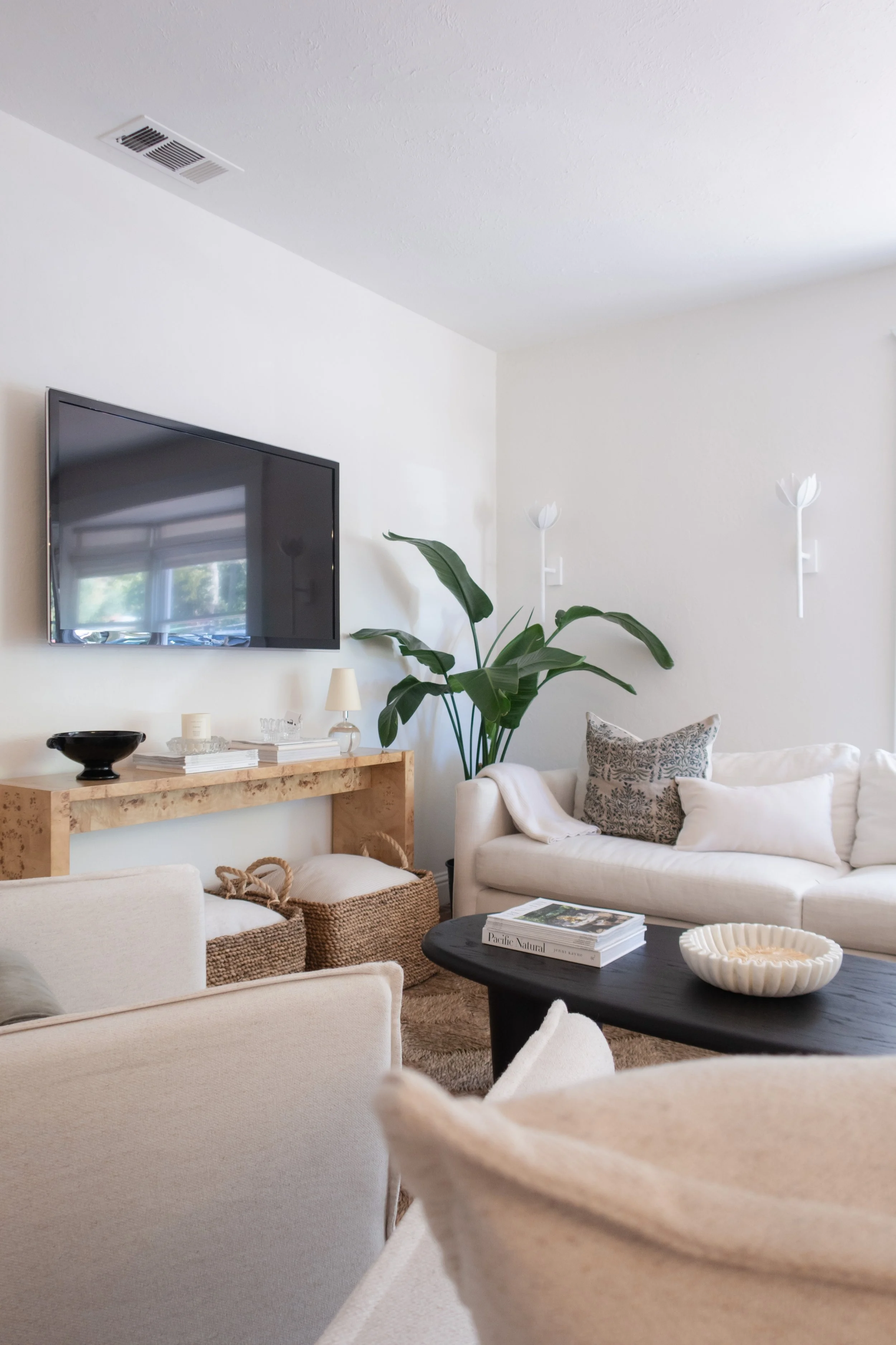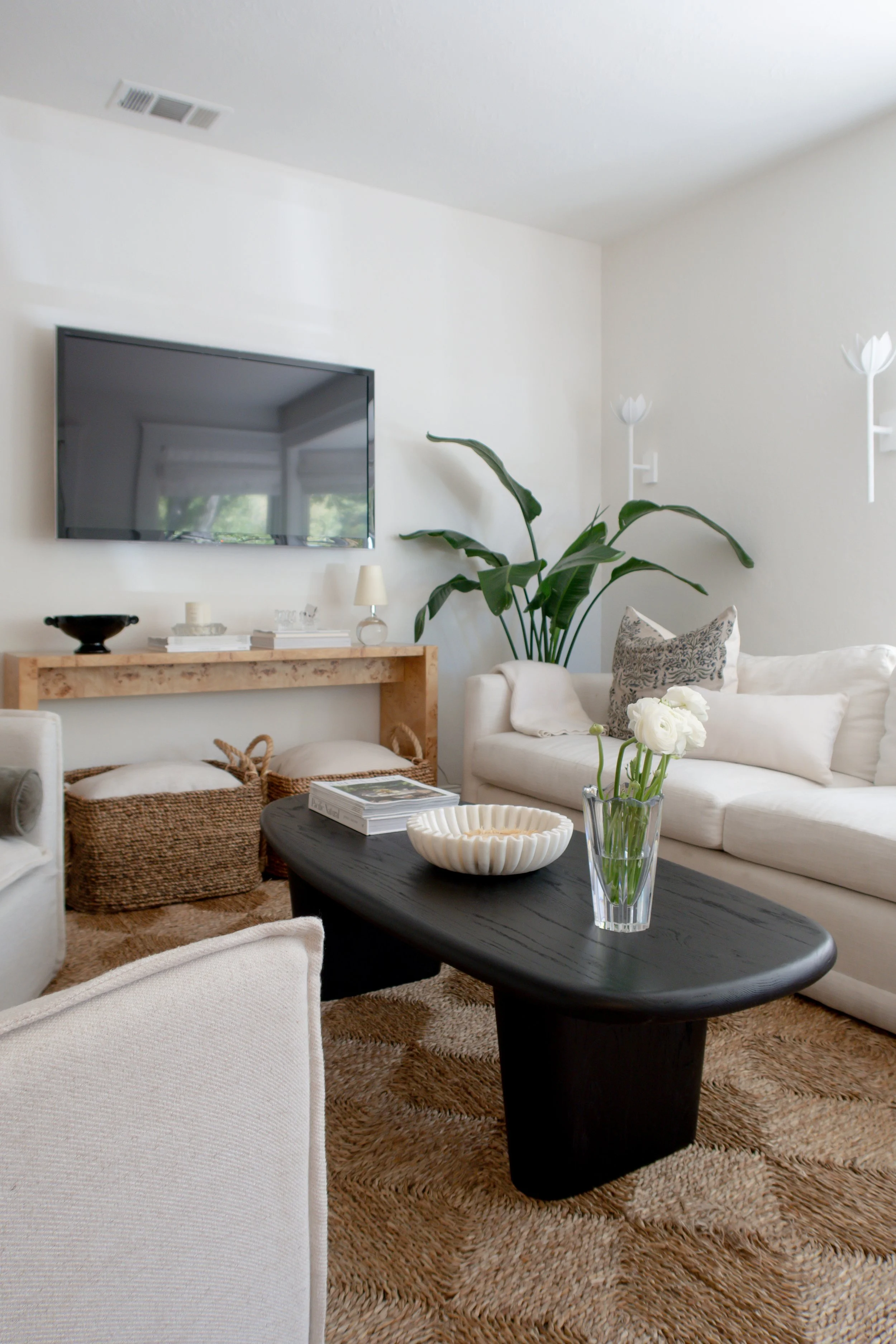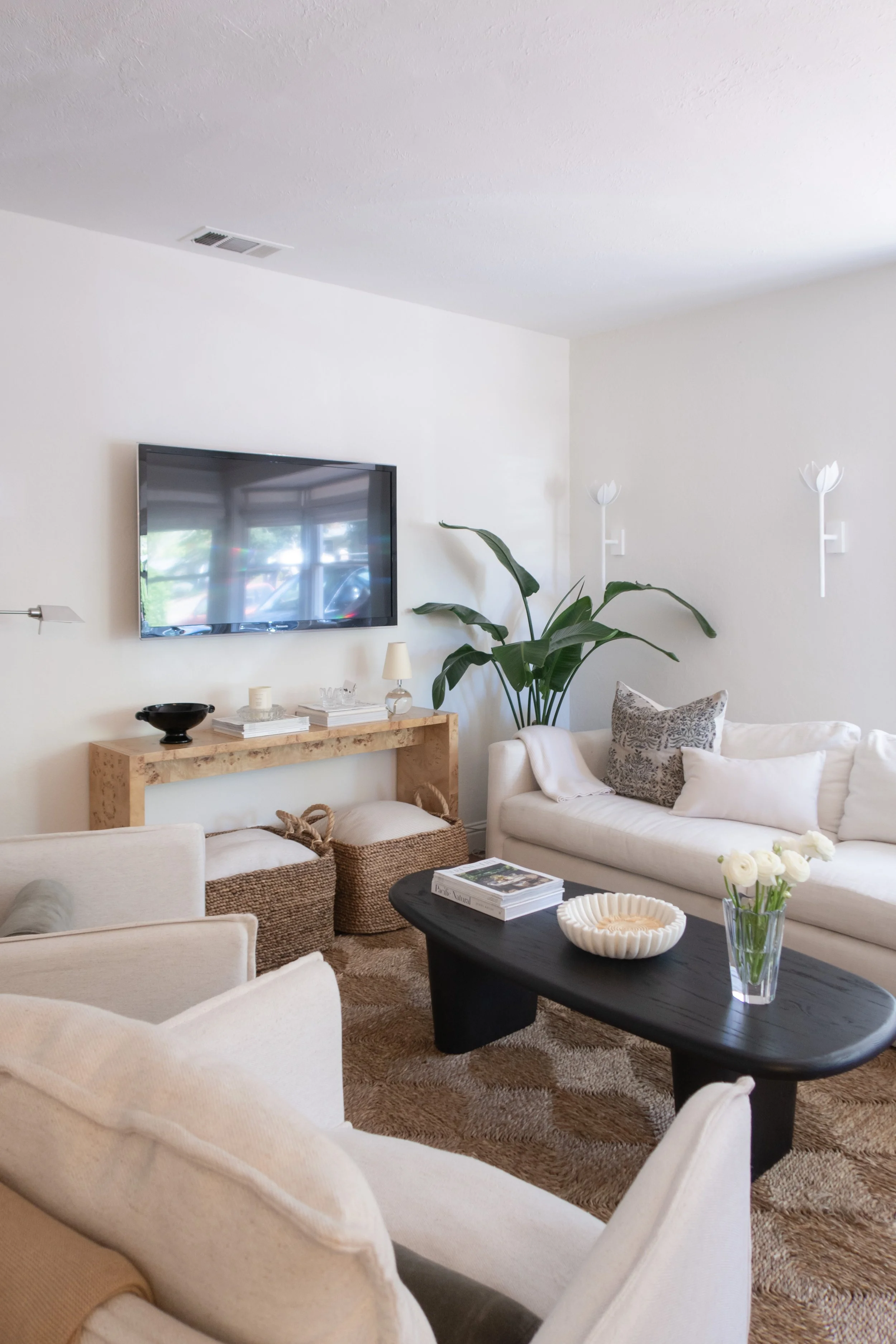 We love our new Napa home. It’s quaint and cozy and we absolutely love living here. With that being said, I knew it wasn’t without obstacles, specifically when it came to layout and design thanks to things like a window seat, funky front door swing interference and just a general small footprint. I knew I wanted to lean into cozy vibes throughout the home (and create a space we can layer throughout the years) but layout options felt limited, especially in the living room.